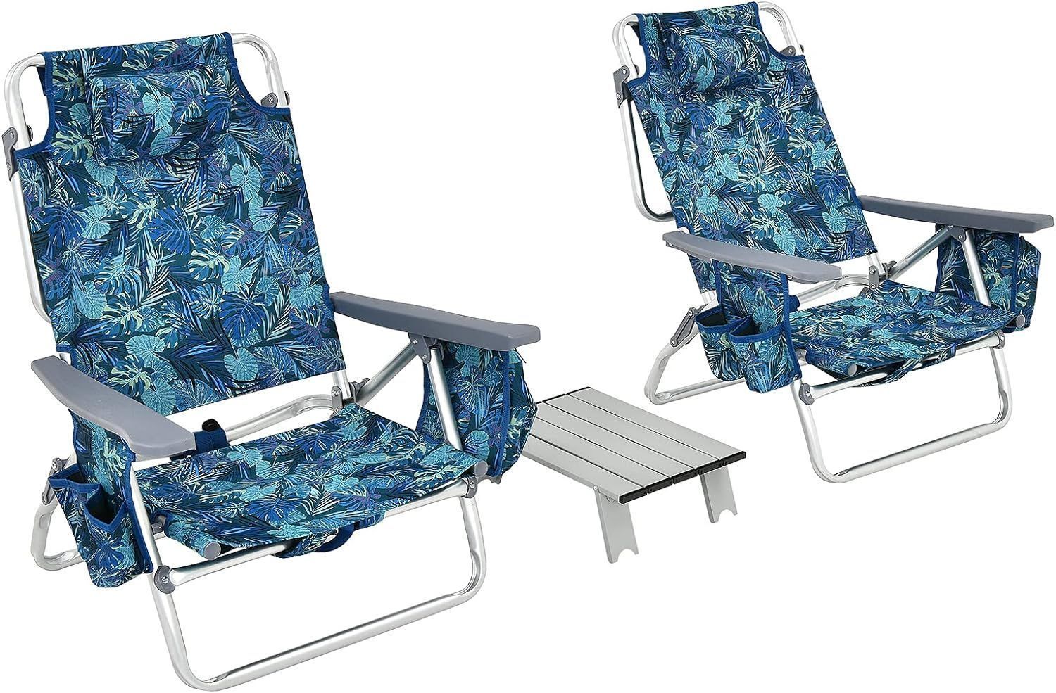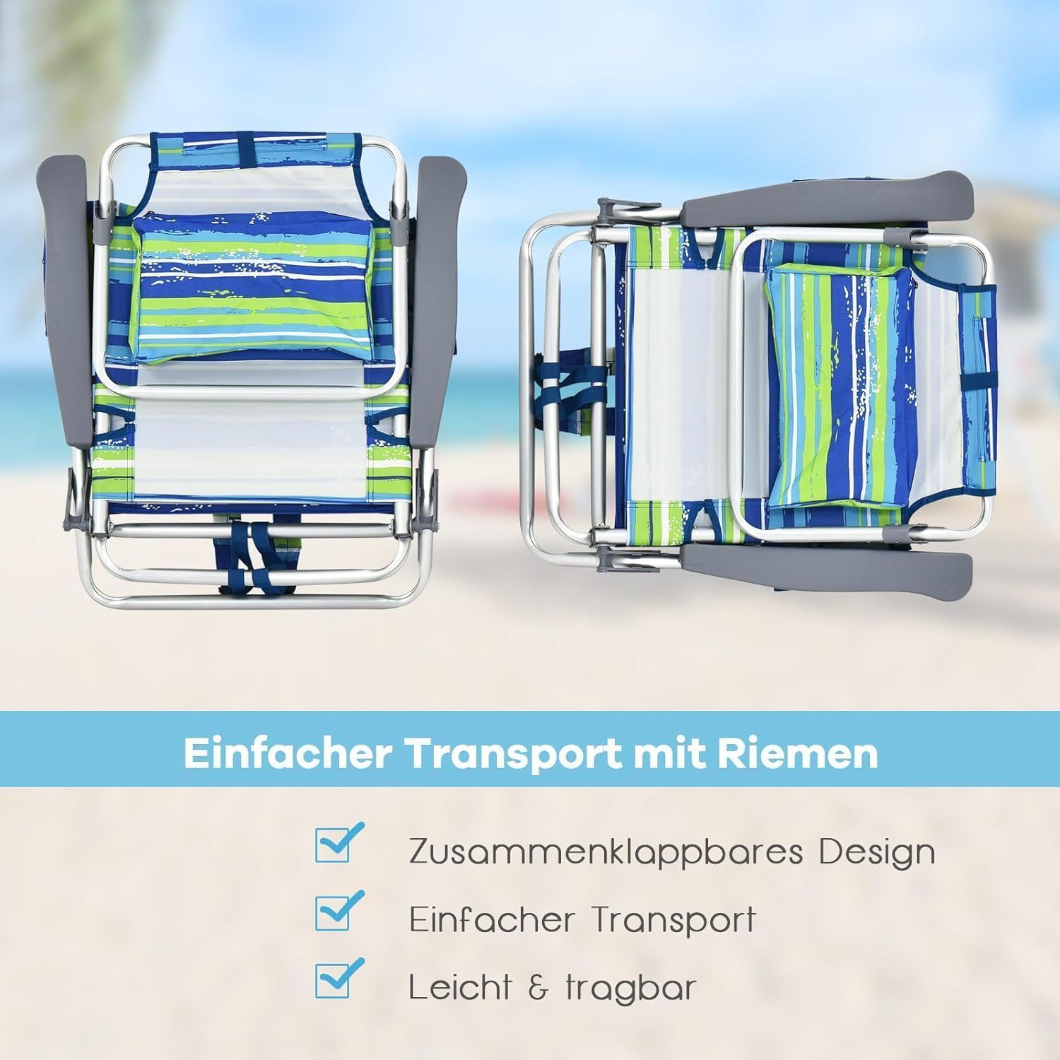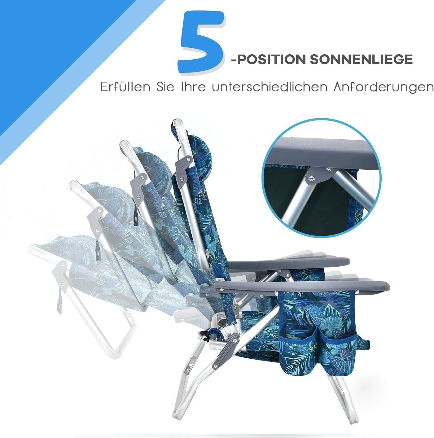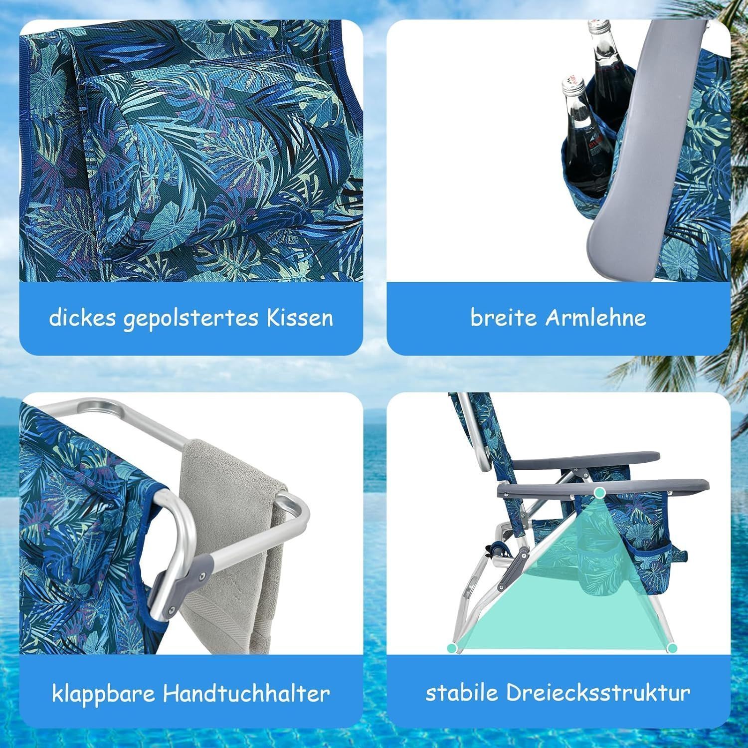 Strandstühle und Tisch Set, klappbare Campingstühle mit Verstellbarer Rückenlehne