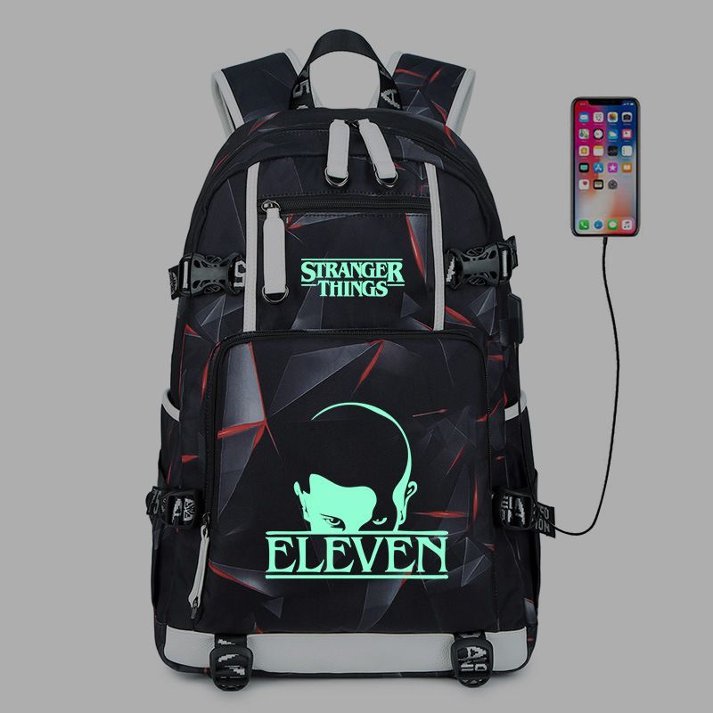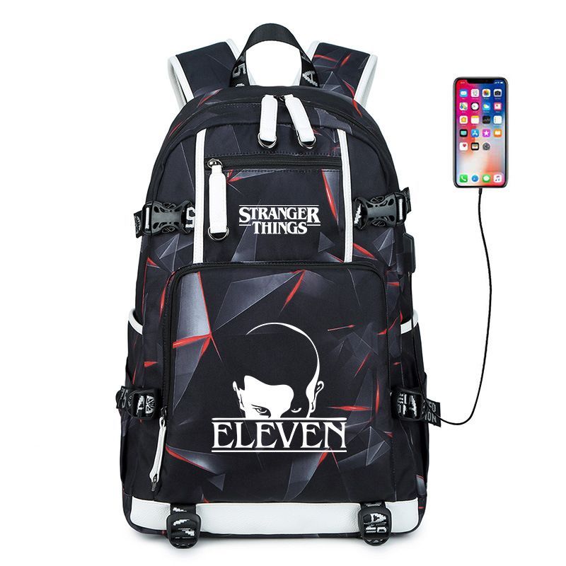 Stranger Things Eleven USB Backpack Damen Reise Rucksack Laptoptasche 32x16x48