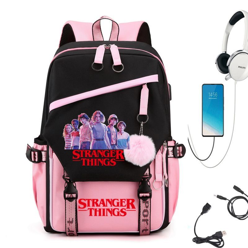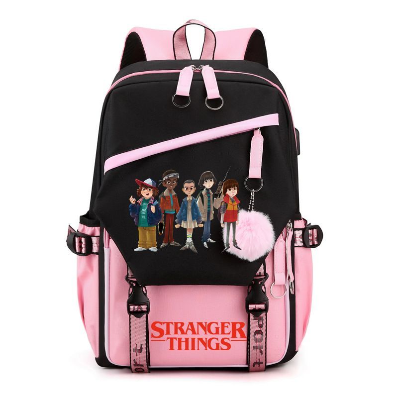 Stranger Things Eleven USB-Lade Schultaschen Cartoon Rucksack Outdoor Backpack