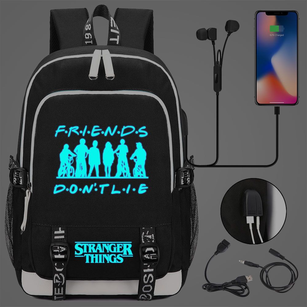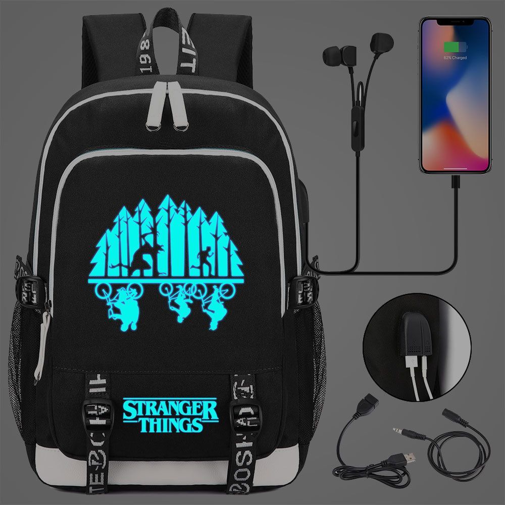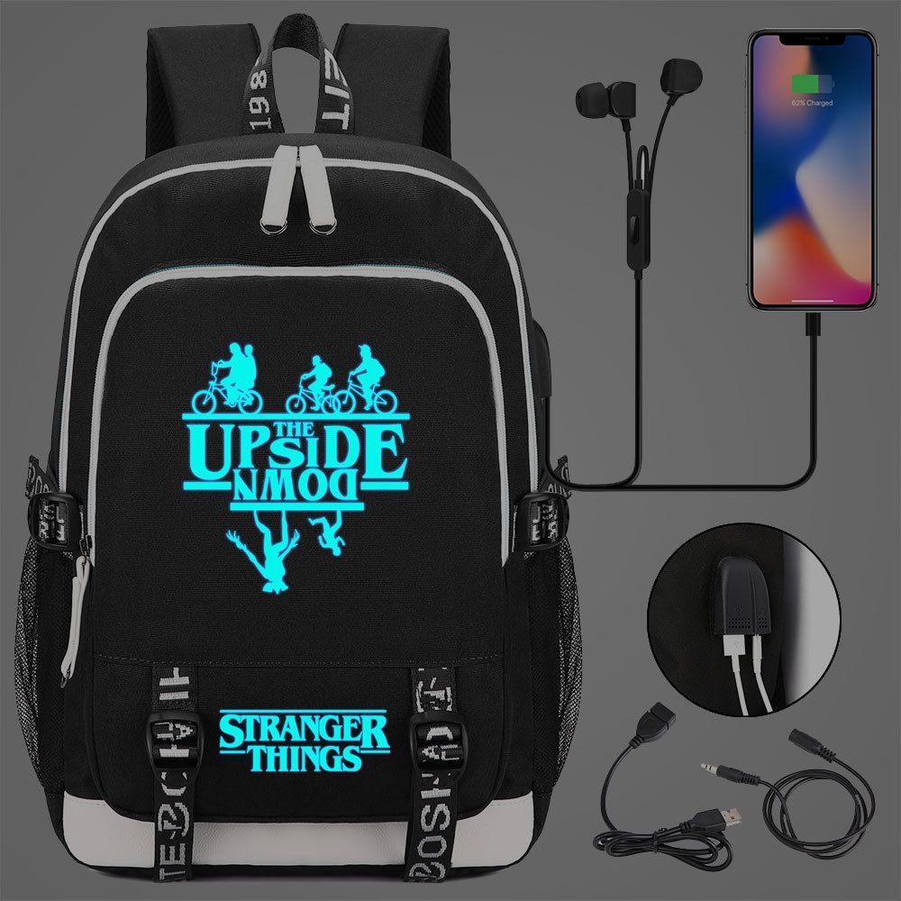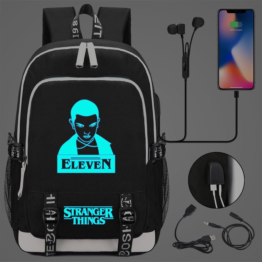 Stranger Things Schultasche Eleven Nancy Noctilucent Reise Rucksack USB-Lade Backpack