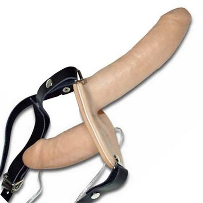 Strap-On Hohl mit Spritz-Funktion Umschnall-Dildo Fetisch Sex-Spielzeug 21,6cm