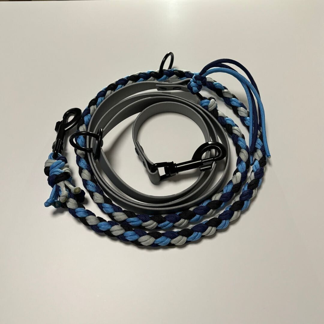 Strapazierfähige Hundeleine aus Paracord und Biothane 100% Handarbeit in Blau