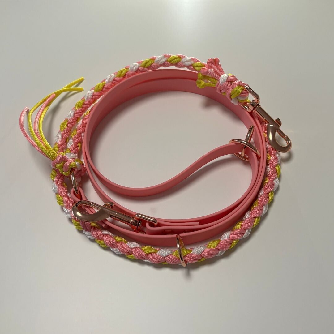Strapazierfähige Hundeleine aus Paracord und Biothane 100% Handarbeit in Rosa