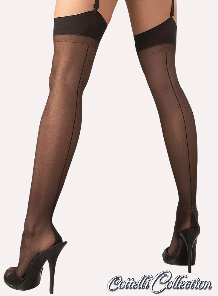 Cottelli Collection Strapse Strümpfe mit Naht XS S M L XL 2XL 3XL 4XL Nylons schwarz "Mandy" S52
