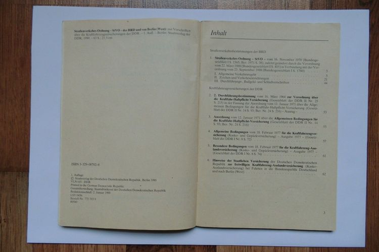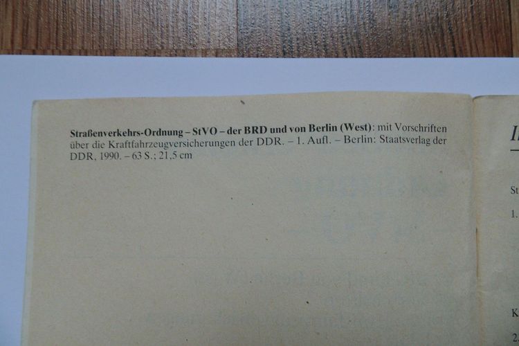 Straßenverkehrs-Ordnung - StVO - BRD und Berlin (West) - 1990 DDR Staatsverlag