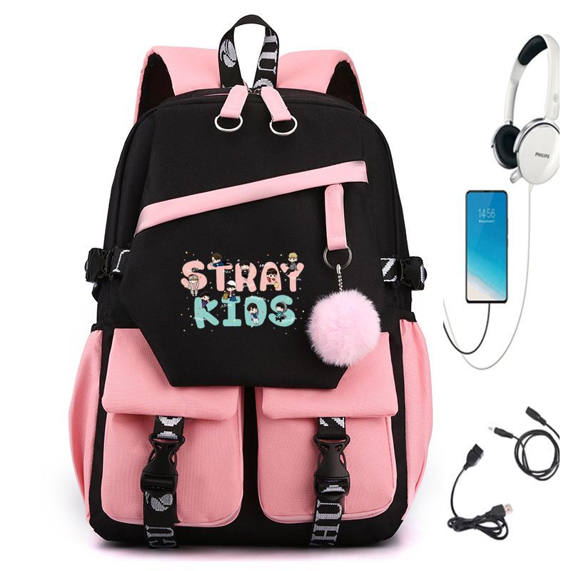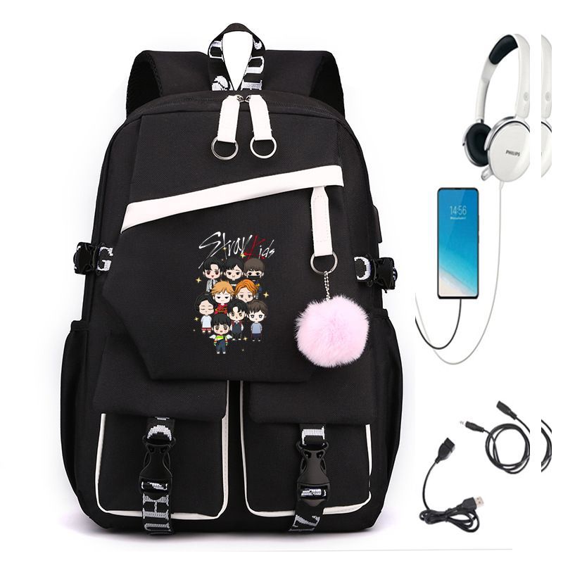 Stray Kids Bang Chan Han Lee Know Schultasche USB-Lade Ruscksack Student Backpack