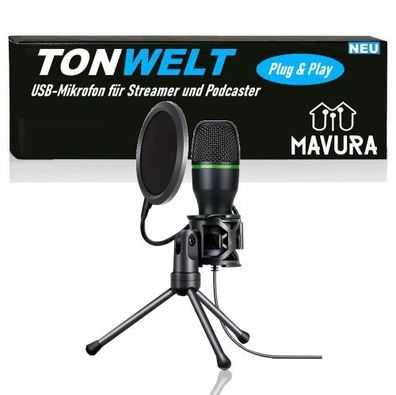 • Tonwelt USB Mikrofon Gaming Podcast Streaming PC Set mit Ständer & Popschutz