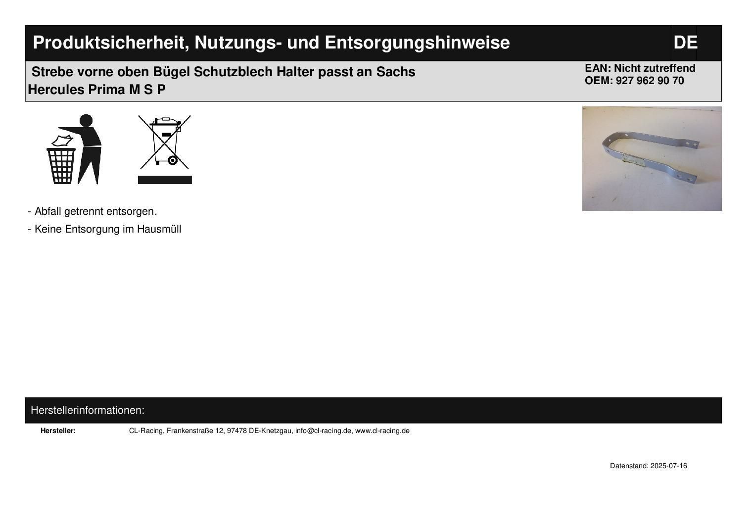 Strebe vorne oben Bügel Schutzblech Halter passt an Sachs Hercules Prima M S P In dieser Auktion gibt es folgenden Artikel zu kaufen: Strebe (siehe Foto) Modell: passend für Hercules Prima M S P 2 3 4 5 Bj.: unbekannt Lieferumfang: siehe Foto Artikelzustand: neu aus Geschäftsauflösung, mit minimalen