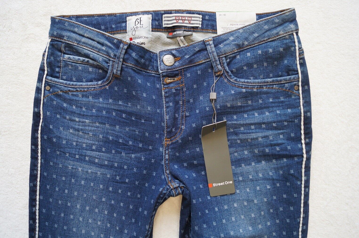 Street One Modell: CRISSI ge musterte Jeans Sweatjeans W 27, 29 L32 Stretch Casual Fit - Slim Leg - low waist Farbe: dunkelblau Material : 99% Baumwolle, 1% Elasthan NEU mit Etikett UVP: 69,99 Euro Textilpflege: 3 0° C Maschinenwäsche Beim Kauf von mehreren Artikeln wird nur einmalig Porto berec