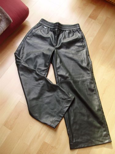 Sehr schöne und bequeme Hose von Street one Dunkelgrünes Lederimitat mit bequemen Gummibund Weites Bein Wie neu Gr 34 = S passend Maße: Bund ( einfach gemessen): 37cm bis 46 cm dehnbar Länge: 90 cm Bitte unbedingt innerhalb 8 Tagen überweisen