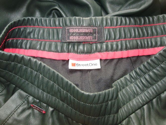 Street one Hose dunkelgrün Gummibund Lederimitat weites Bein Gr 34 = S
