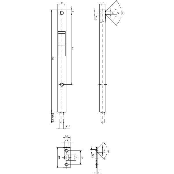 Strenger Kantenriegel U-Gehäuse mit Griffschieber eckig 200 x17x 12mm verzinkt