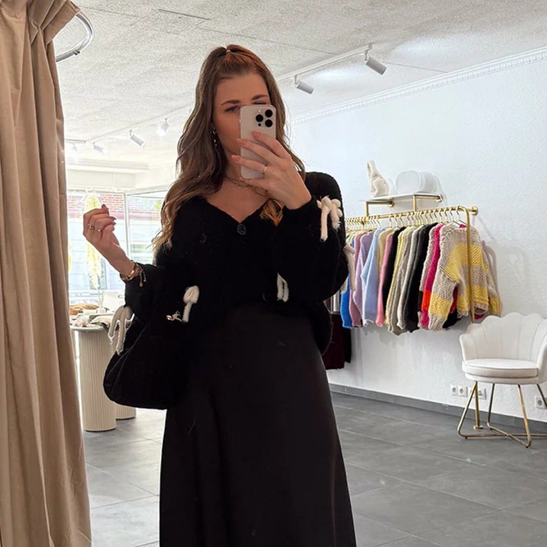 Strickjacke Damen Cardigan mit Schleifen Anna“ Schwarz Onesize XS-XL Frauen Frau