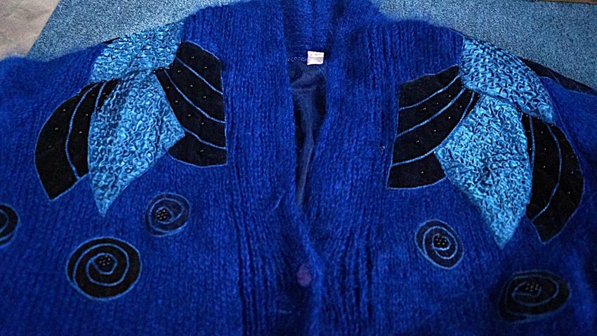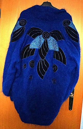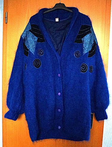 Strickjacke Mohair blau Perle Stickerei Gr. 44/46