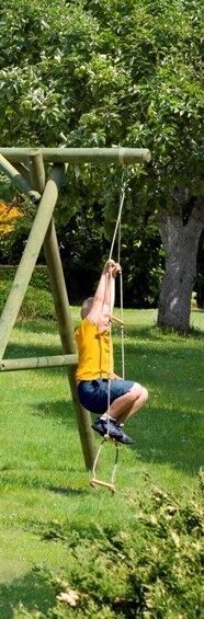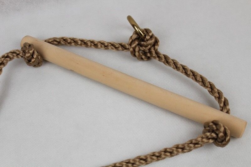 Strickleiter 5 Holzsprossen Ø ca. 20 x 30 mm Länge: ca. 190 cm 1 verzinkter Stahlring zur Befestigung 10 mm PP-Seil max. Belastung: 50 kg