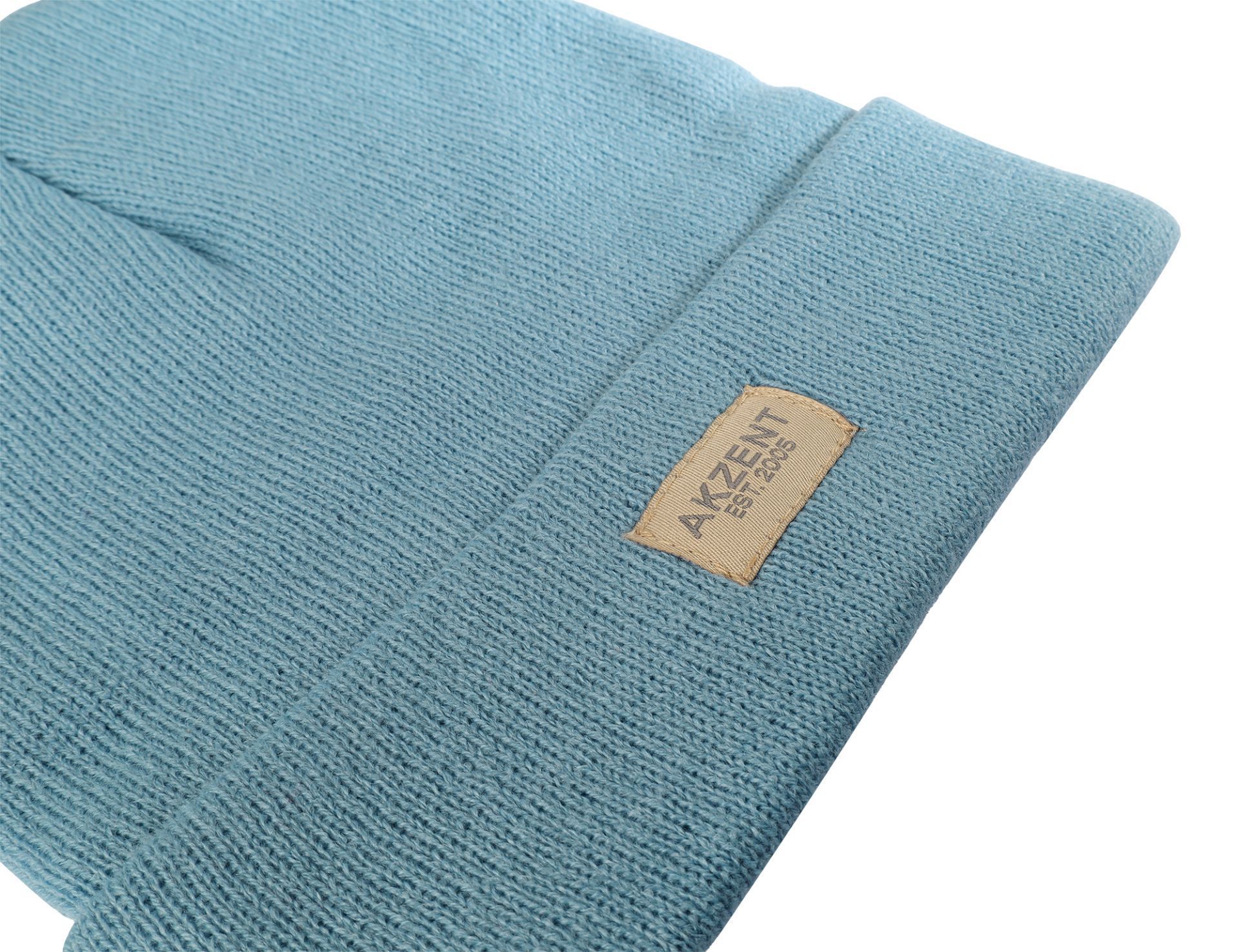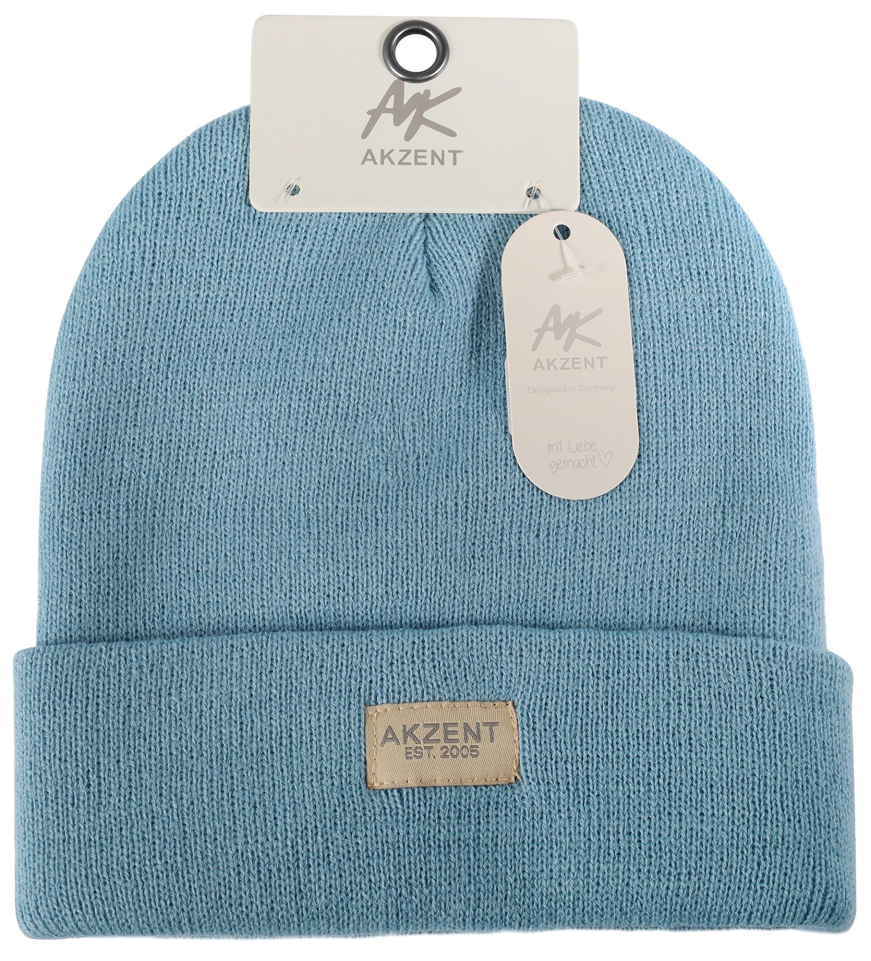 Strickmütze Beanie hellblau Umschlag 100% Acryl Akzent
