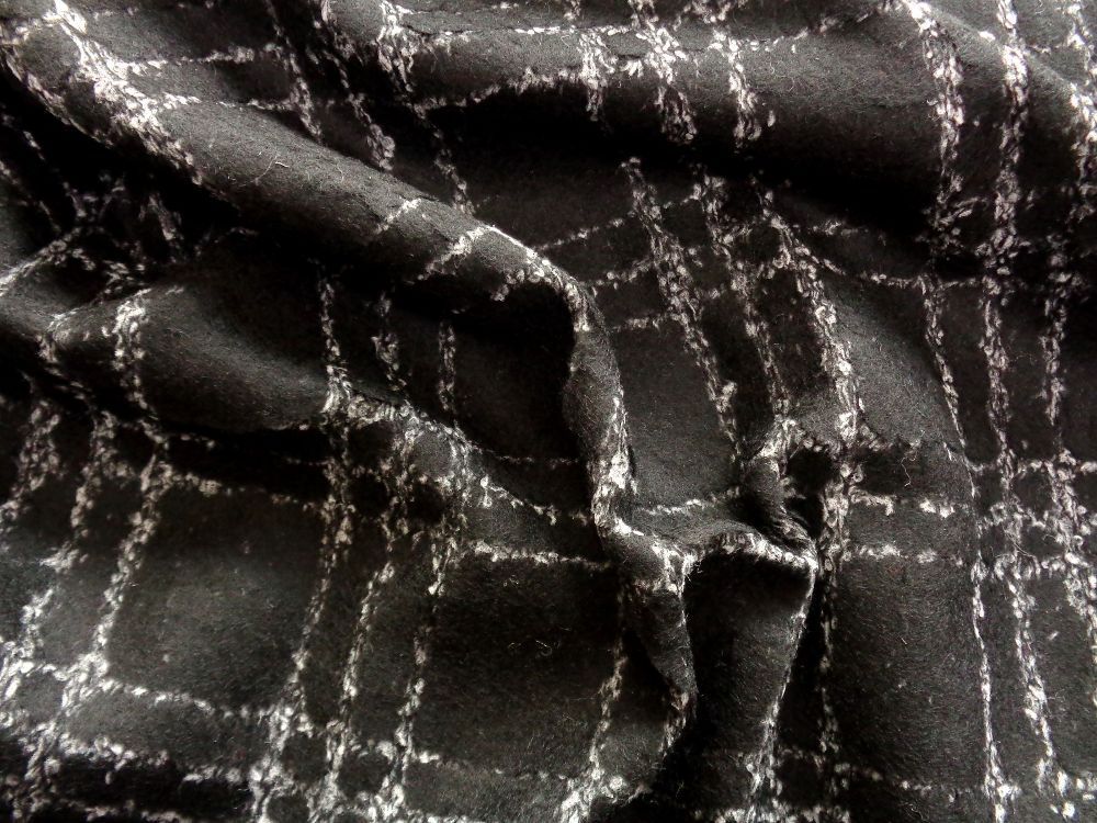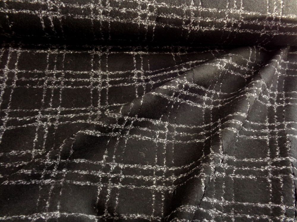 Strickstoff, Mantelstoff, Karo, Meterware, Kleiderstoff, schwarz, grau