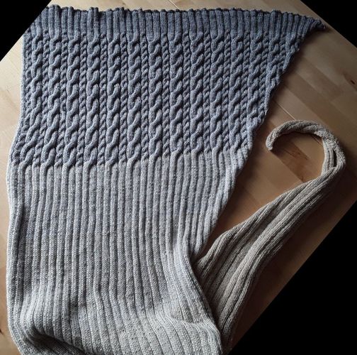 Stricktuch handgestrickt Zopfmuster SCHAL Merino beige-grau Farbverlauf Unikat