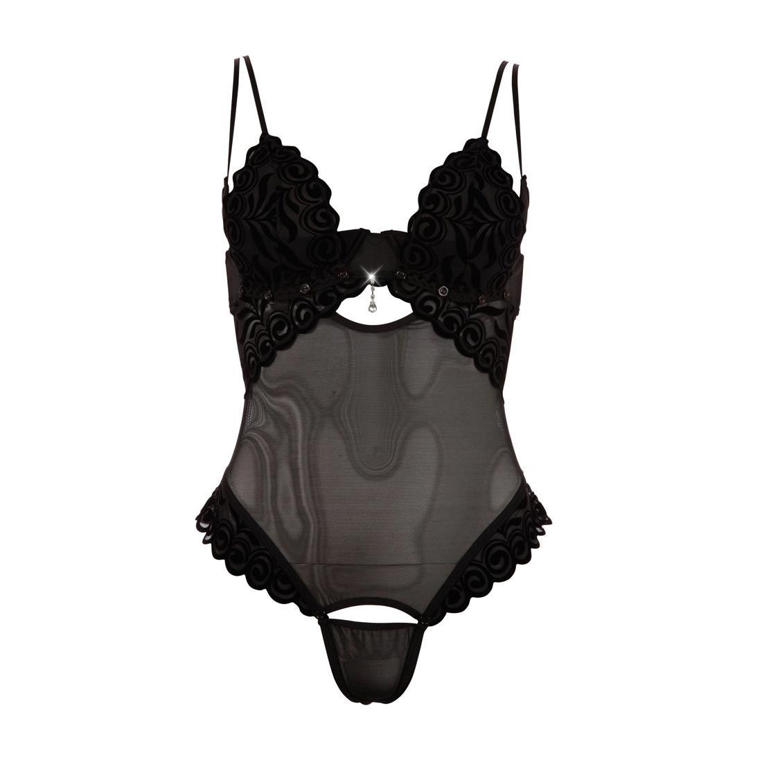 String-Body Flockprint Strass BH-Hebe schwarz Reizwäsche dessous "Monique" A31
