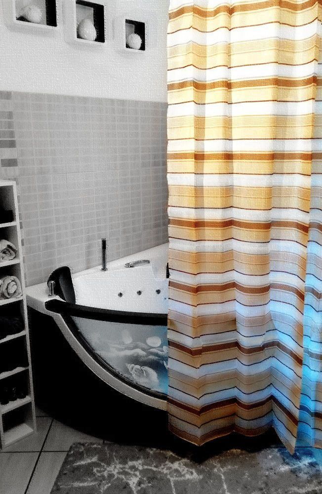 Stripes Beige Textil Duschvorhang 180 x 200 cm. Streifen Design