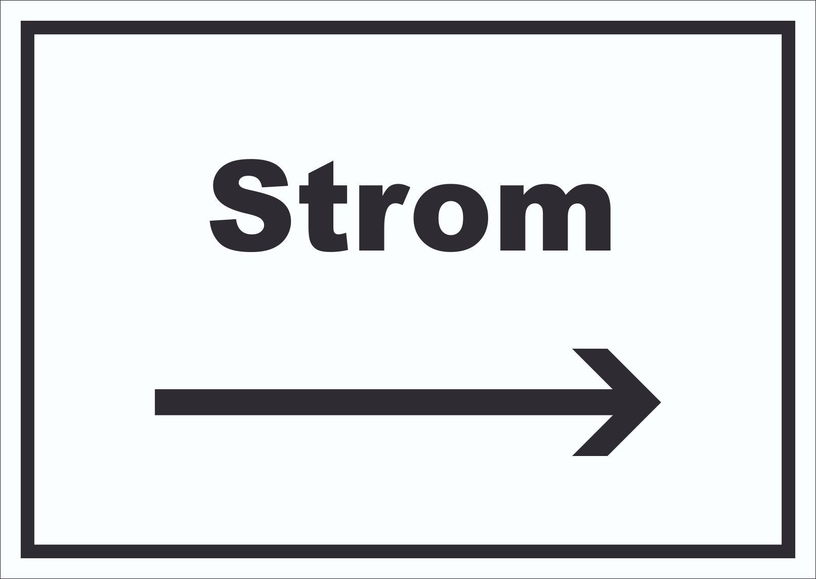 Strom Schild mit Text und Richtungspfeil rechts Anschluss waagerecht