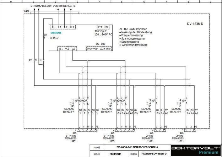Stromverteiler pTD-S 32A 16A 2x230V 3P Zähler Siemens und Mennekes Doktorvolt 4838
