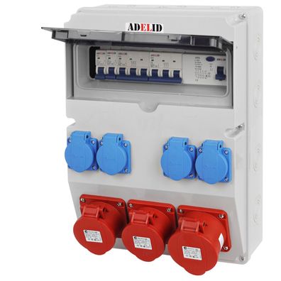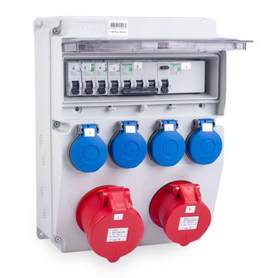 • Baustromverteiler 16A 32A CEE 4x230V typ E Stromverteiler 36 Module Revisionsfenster