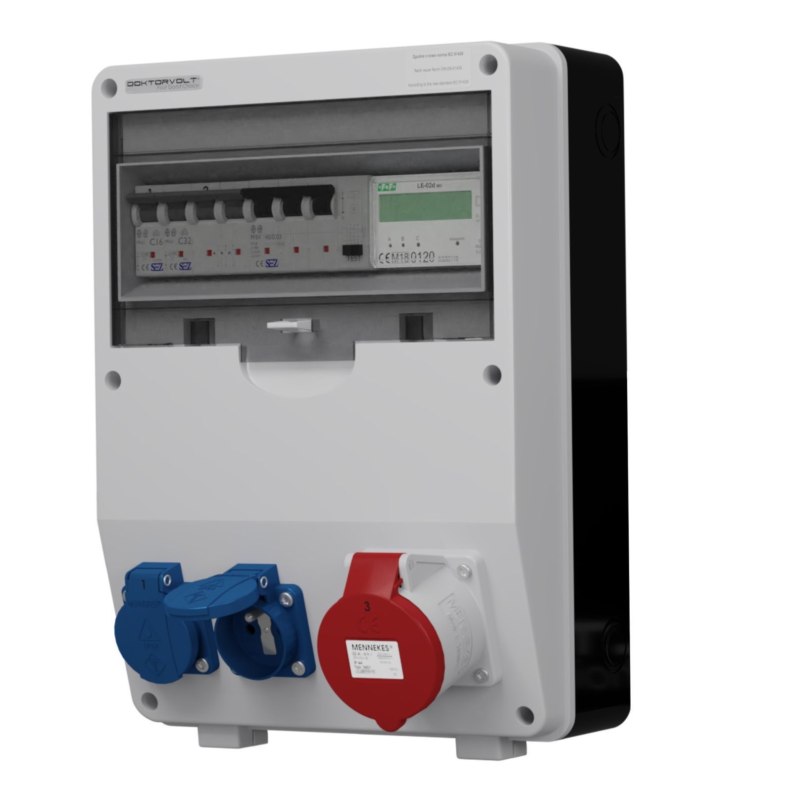 Stromverteiler TD-S/FI 1x32A 2x230V franz/belg System Stromzähler MID Doktorvolt 9672