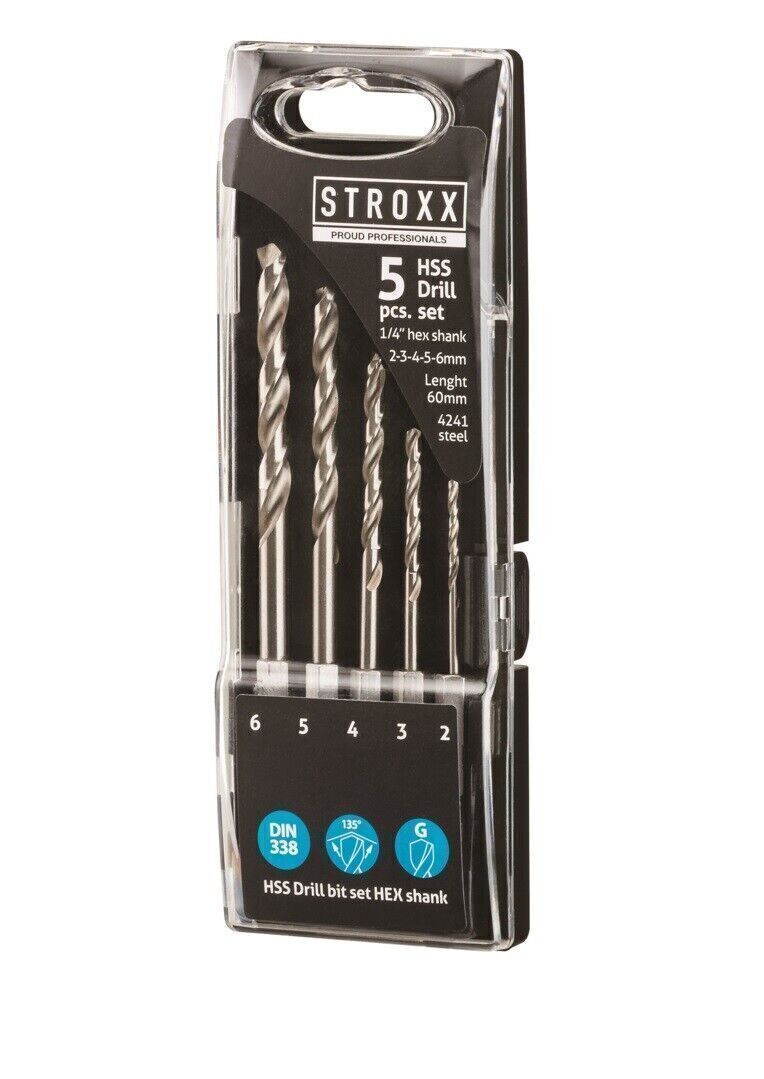 STROXX HSS-Bohrer-Set, 2-6mm, 60mm Spirallänge 5-teiliges Spiralbohrer-Set