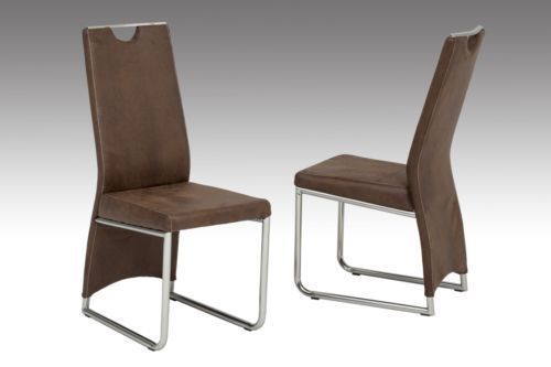 Stühle Hochlehnstuhl - NANO - 4er Set Vintage Leder-Look Mittelbraun