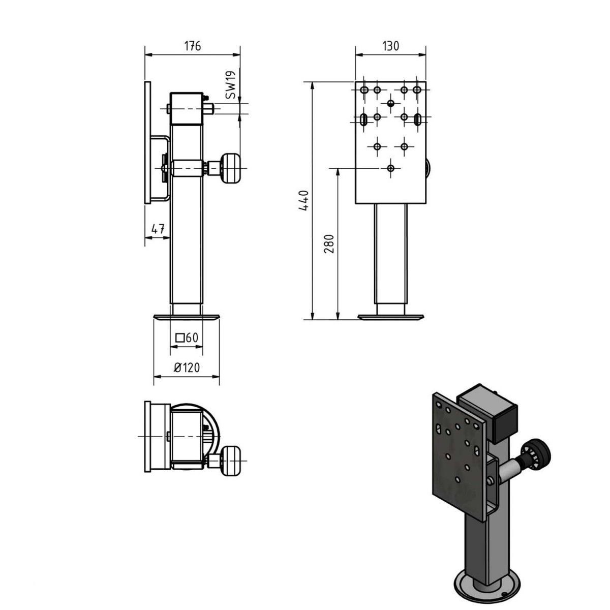 Stützen Set 415mm Ausdrehstützen Kurbelstützen Kombiflansch passend zu Hochlader P