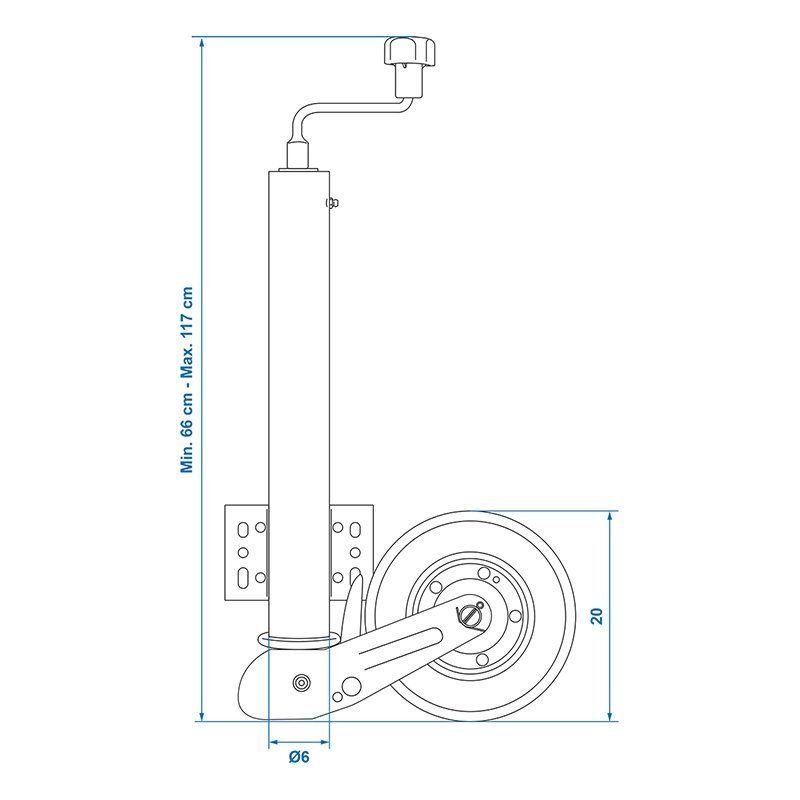 Stützrad 60mm Stahlfelge mit Vollgummi-Reifen 200x60mm klappbar