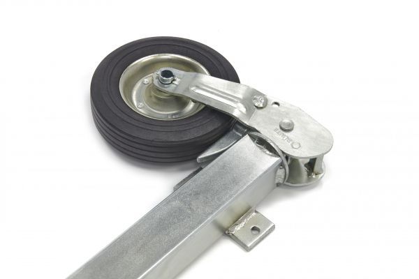 Stützrad, Vkt. 60 mm, automatisch klappbar Stützrad, Vkt. 60 mm, automatisch klappbar Stützräder gehören zu den Stützeinrichtungen an Zentralachsanhängern, welche die STVZO vorschreibt, wenn die Stützlast mehr als 50 kg beträgt. Sie müssen in der Höhe verstellbar und unverlierbar angebracht sein. Zu
