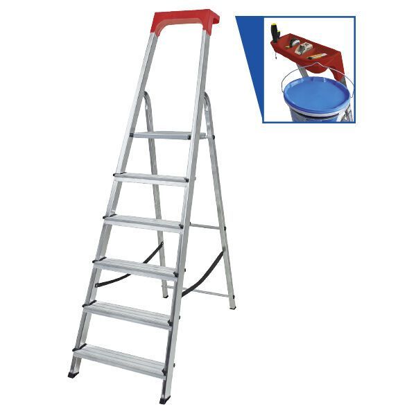 Stufenleiter / Haushaltsleiter aus Alu, 6 Stufen, Arbeitshöhe bis 3210 mm