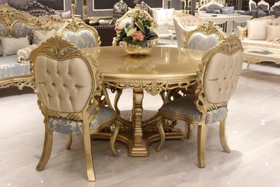 Stuhl Set 4x Lehn Stühle Esszimmerstuhl Holz Luxus Esszimmer Stoff Barock Stühle