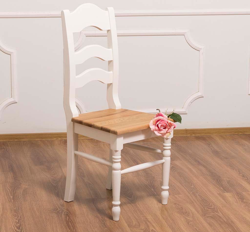 Stuhl Massiv Holz weiß Esszimmerstuhl Landhaus mit Eichenplatte