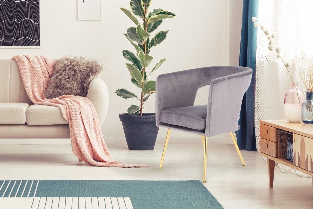 Stuhl Samt Esszimmer Polster Wohnzimmer Schminktisch Sessel retro modern gold