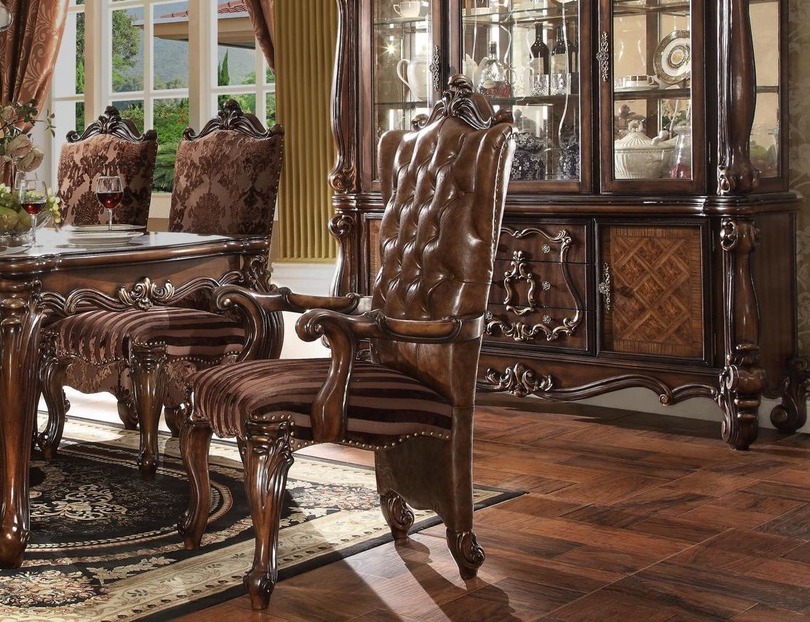 Stuhl Thron Sessel Set Esszimmer Designer Holz Antik Stil Barock Rokoko Leder