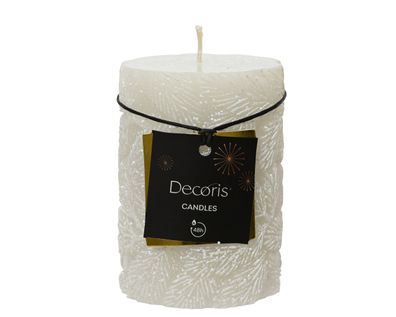 • Stumpenkerze Paraffin 10cm mit Tannenzweig Muster Weiß