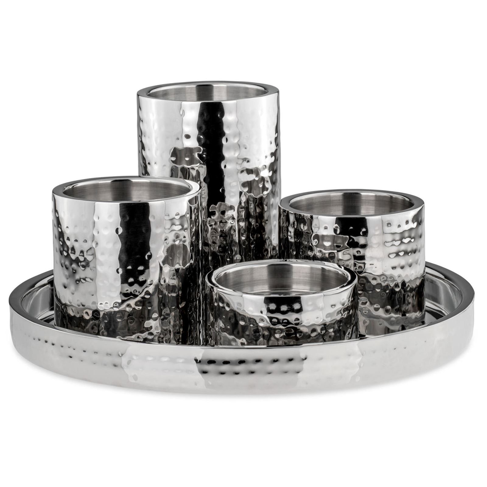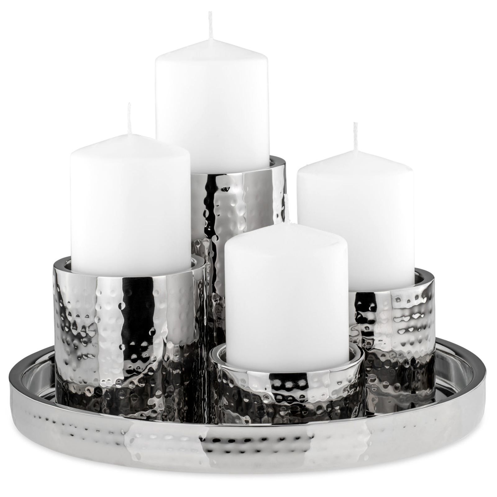 Stumpenkerzenhalter Set 5-tlg. gehämmert Edelstahl Kerzenständer Tablett Ø 32 cm