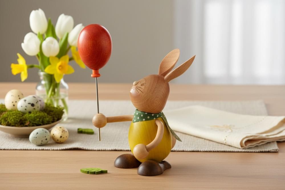 Kuhnert Stupsi Hase mit Luftballon – Fröhliche Osterfigur aus dem Erzgebirge