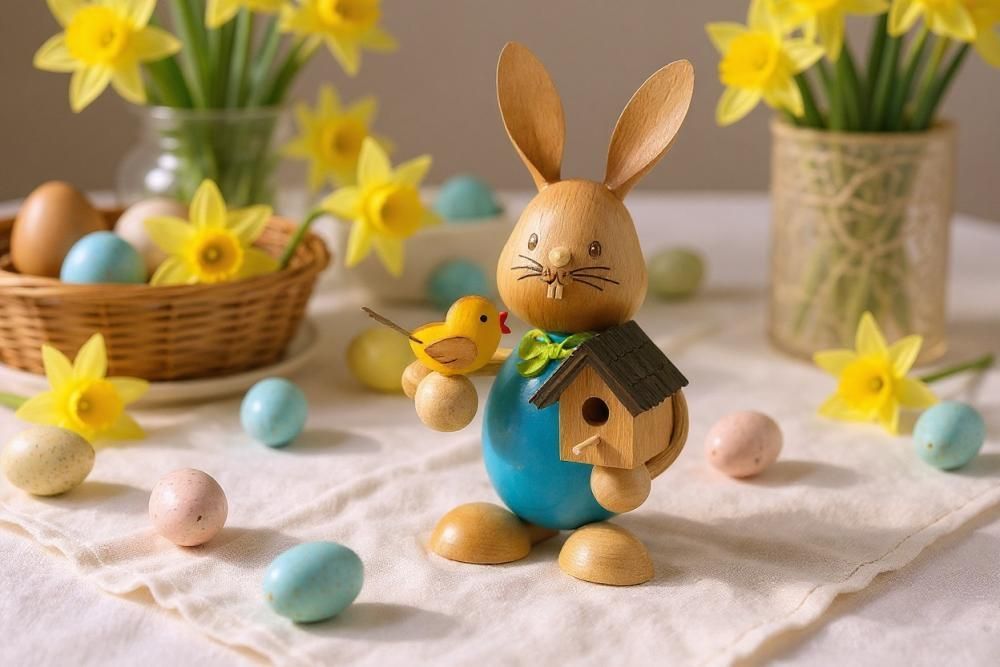 Kuhnert Stupsi Hase mit Vogelhaus – Liebevolle Osterdekoration aus dem Erzgebirge