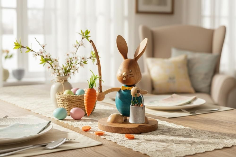 Kuhnert Stupsi Hase Möhrenangler – Lustige Osterfigur aus dem Erzgebirge
