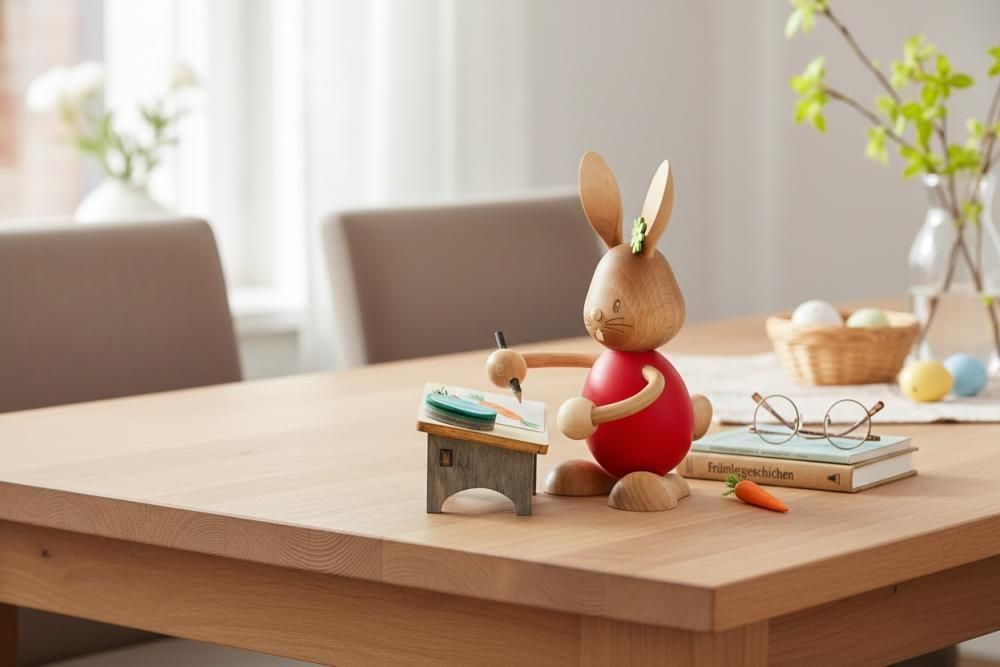 Kuhnert Stupsi Hase Schüler – Verspielte Osterfigur aus dem Erzgebirge