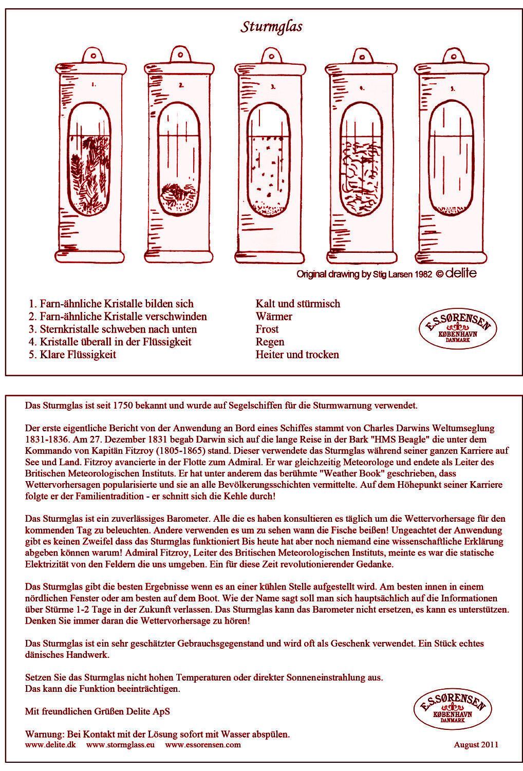 Sturmglas Barometer, Edelstahl gebürstet, mit Wandhalterung, Höhe 145 mm