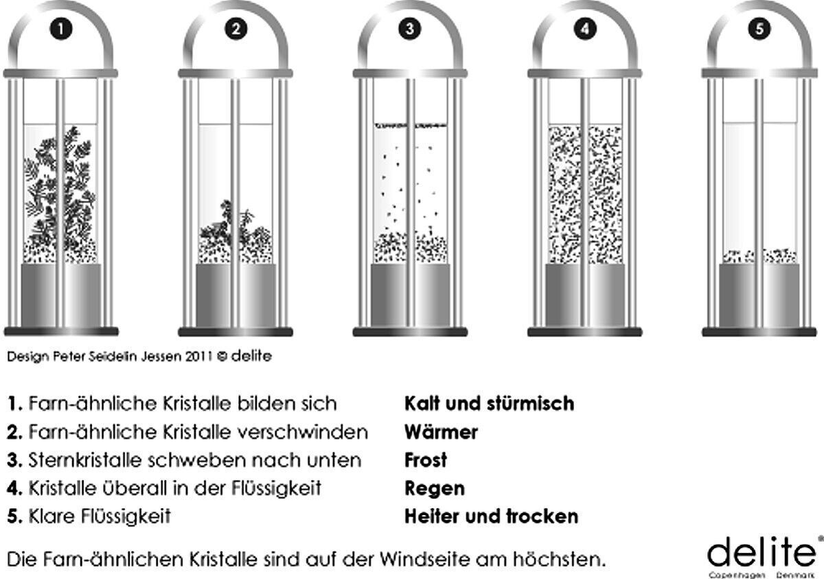 Delite Sturmglas Barometer, modern, Edelstahl gebürstet, mit Wandhalterung, Höhe 140 mm