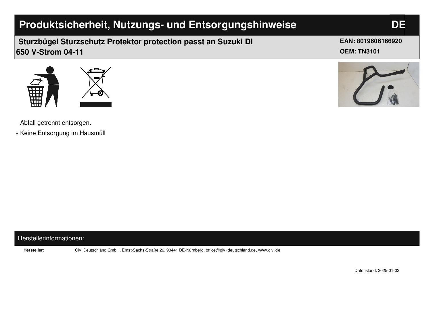 Givi Sturzbügel Sturzschutz Protektor protection passt an Suzuki Dl 650 V-Strom 04-11