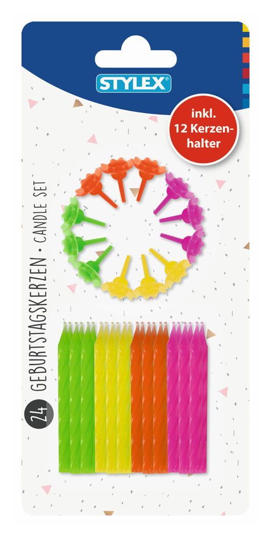Stylex 10700 Geburtstagskerzen, 24 Stück mit 12 Halter
