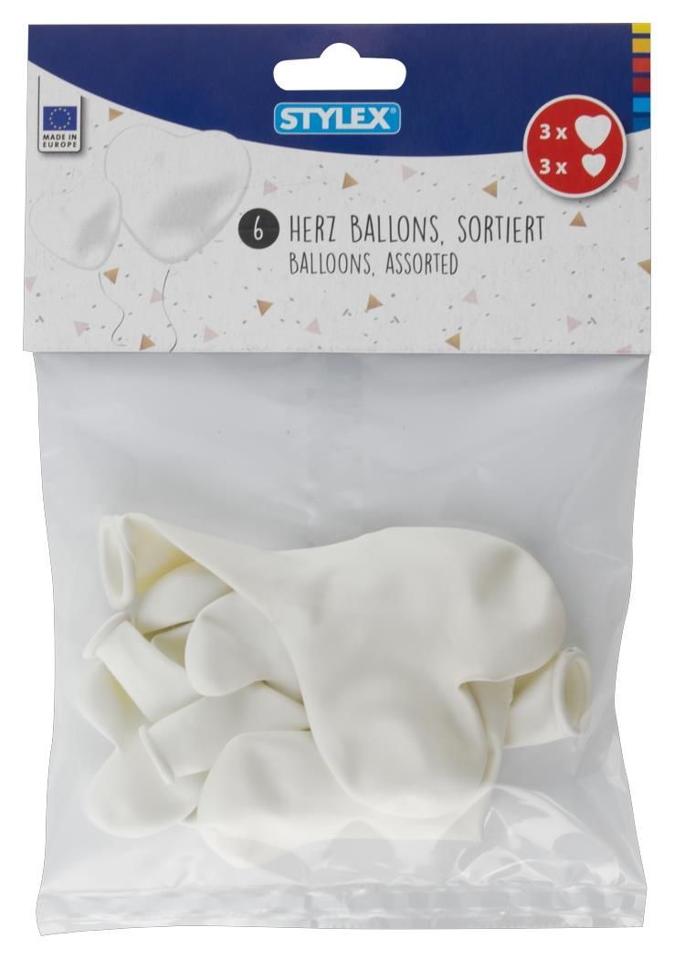 Stylex 14762 Luftballons weiße Herzen - 6er Beutel