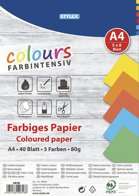 • STYLEX® 40818 Kopierpapier - A4, 80 g/qm, 40 Blatt, sortiert